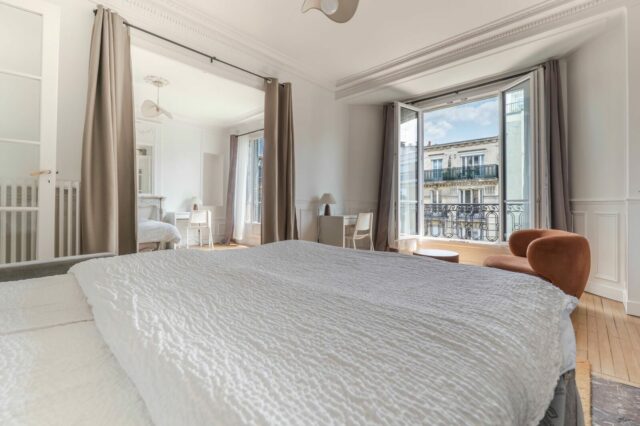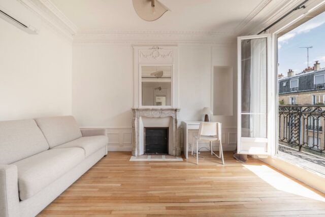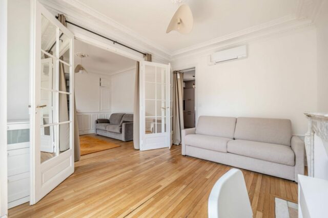 À louer meublé, bel appartement d’un immeuble Haussmannien, situé au 5ᵉ étage avec ascenseur, rue Bobillot – 13ᵉ arrondissement, Paris, (en face de l’église Sainte-Anne, à deux pas de la Place d’Italie et de Tolbiac)