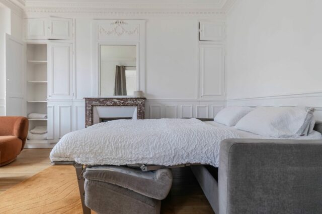 2 chambres, 2 salles de bains, un double séjour modulable, pouvant être séparé pour créer une 3ᵉ chambre → Équipé de deux canapés convertibles avec couchage quotidien de qualité.